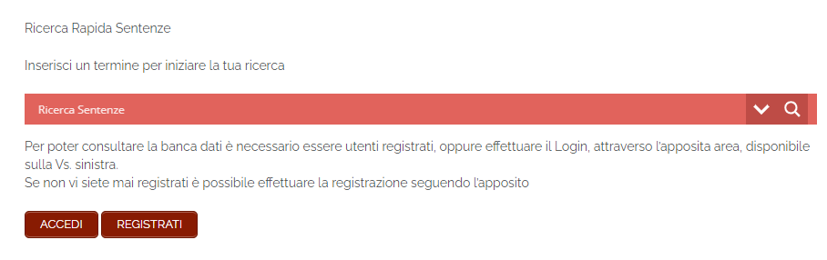 Per poter consultare la banca dati è necessario essere utenti registrati, oppure effettuare il Login, attraverso l’apposita area.